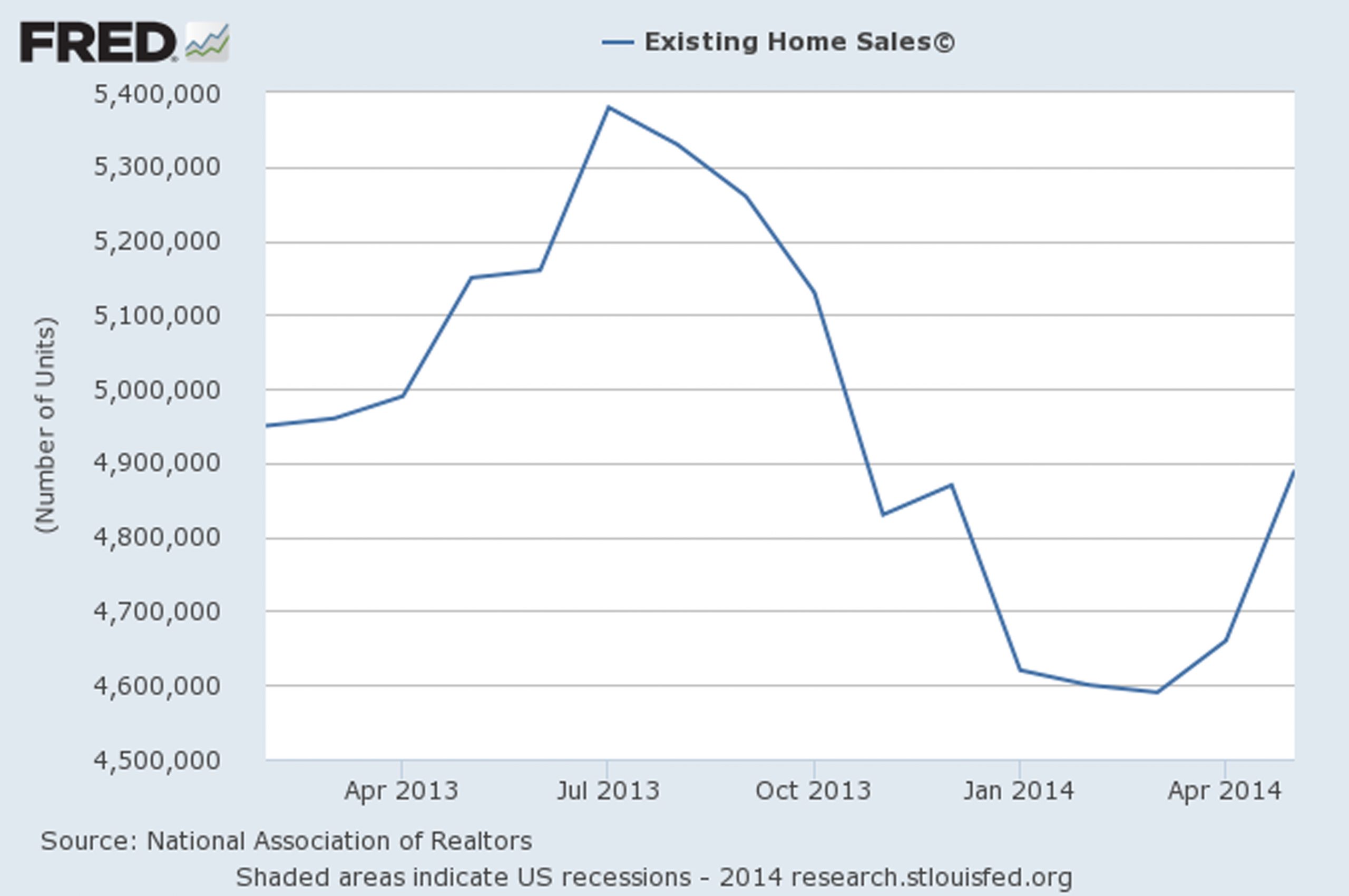 The number of existing home sales has shown signs of recovery in the past few months after cratering when the Fed raised mortgage rates last summer. In May, 4.9 million homes were sold, and economists expect that to tick up to 5 million for June.
