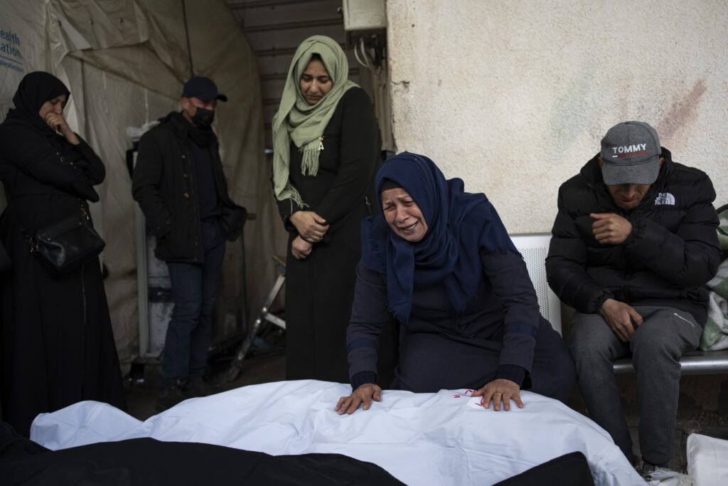 Palestinians mourn relatives killed in the Israeli bombardment in Rafah, Gaza Strip, Saturday, Feb.10, 2024. (AP Photo/Fatima Shbair)