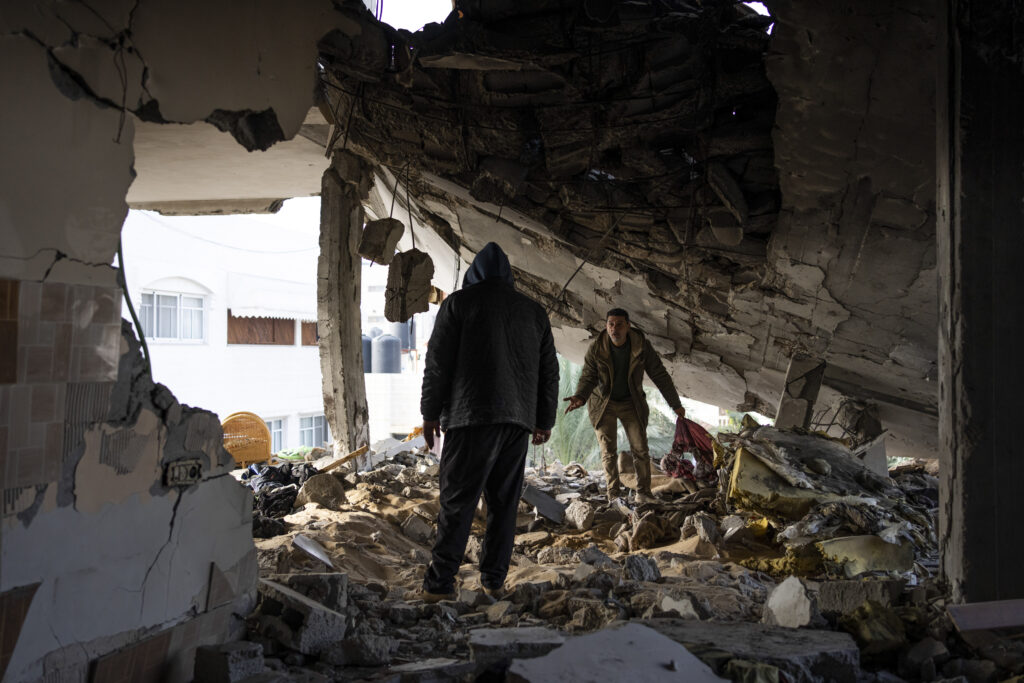 Palestinians check destruction after an Israeli strike in Rafah, Gaza Strip, Saturday, Feb.10, 2024. (AP Photo/Fatima Shbair)