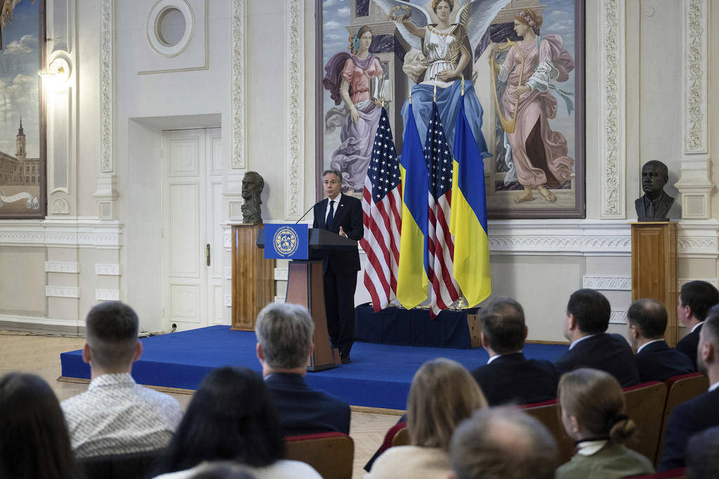 “The United States has been by your side from Day One,” Blinken said earlier Tuesday in a speech at the Igor Sikorsky Kyiv Polytechnic Institute. “We’re with you today. And we will stay by your side until Ukraine’s security, its sovereignty, its ability to choose its own path is guaranteed. And we’re far from your only friend. Dozens of countries around the world are not just rooting for Ukraine’s success — they are helping you achieve it.”