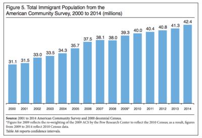 — The available evidence also indicates that the number of new legal immigrants, both temporary and permanent, arriving from abroad has increased. Our best estimate is that the arrival of legal immigrants increased about 30 percent, from 1.6 million in 2012-2013 to two million in 2014-2015.