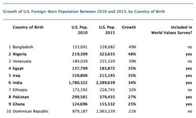 The report from the Center for Immigration Studies draws attention to the clash of cultures between the pro-diversity United States and the huge growth in immigration from 2010 of those from low-diversity nations such as Egypt, India, Ghana and Iraq.