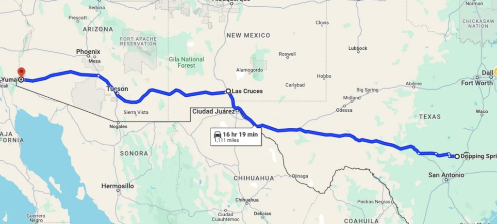 From Central Texas, some caravaners would continue driving west to Yuma, Arizona, expecting to arrive Saturday afternoon, while others would go south to Quemado and Eagle Pass, Texas.