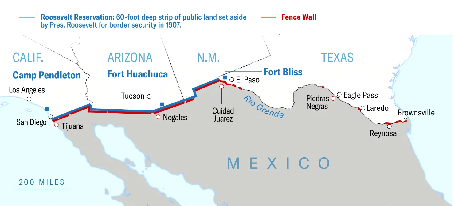 Shifting which federal department controls the land is not unprecedented for Trump. In 2019, his first administration moved to transfer land controlled by the Interior Department to the Defense Department for three years so that it could build 70 miles of border wall in that area.