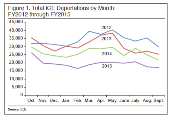 Vaughan also said some evidence that the program is failing can be seen in the number of deportations, which dropped sharply after Obama’s action. She provided a chart cased on government data showing that deportations in 2015 are lower than any of the prior three years.