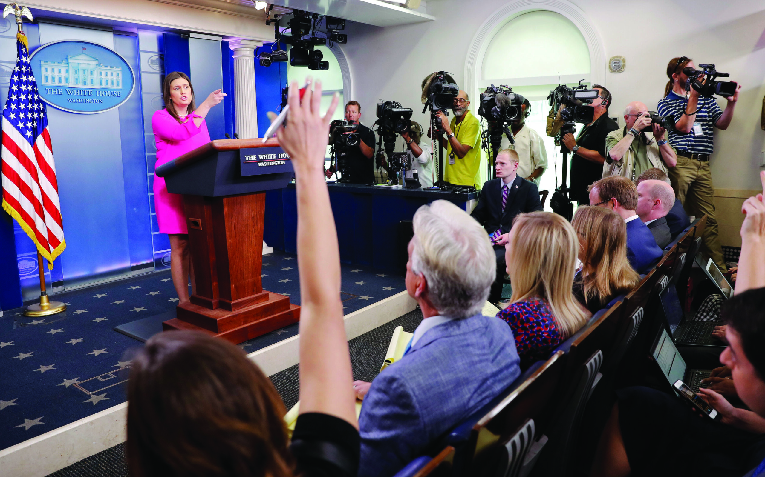 ALSO AT THE EVENT: Homeland Security Secretary John Kelly was caught on a hot mic Wednesday joking to Trump that a ceremonial saber he received as a gift could be used on the press. After posing with the saber, Trump sat down next to Kelly, who leaned in and joked, “You can use that on the press.”