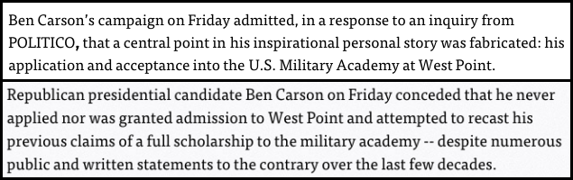 Ben Carson Admits Fabricating West Point Scholarship – POLITICO by Becket Adams