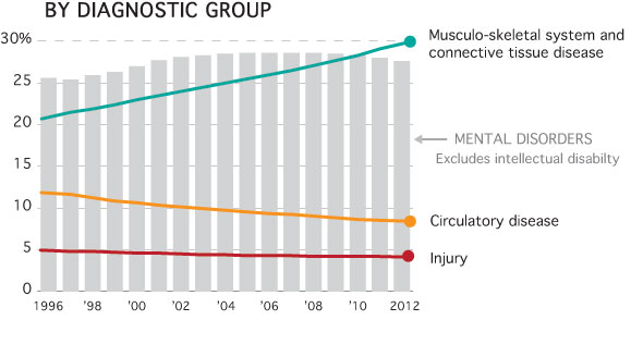 For example, a worker might gain disability benefits for back pain that he says prevents him from working as a forklift operator, whereas in the past he would have been denied benefits unless a doctor could verify his back was broken.