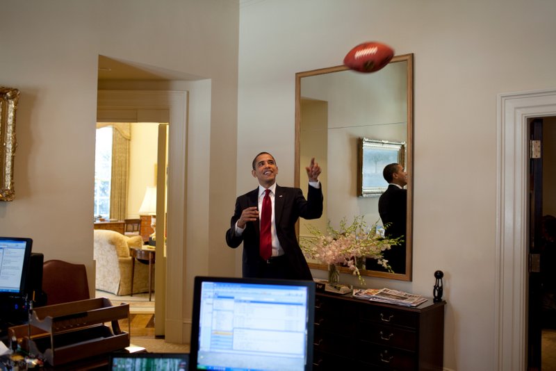 The “political football” was already in Obama’s playbook even before he won the presidency. In January 2008, he used the phrase to bash GOP “cynicism” on immigration reform. All photos in this post were taken by White House photographer Pete Souza.