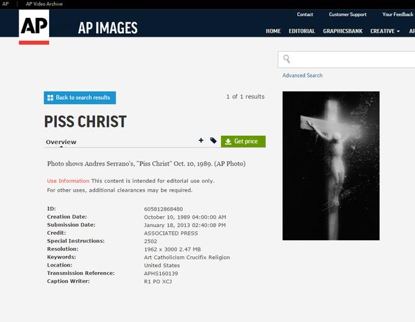 AP was then asked about its decision to carry photos of Serrano’s provocative “Piss Christ,” an image that has long offended and angered Christians.