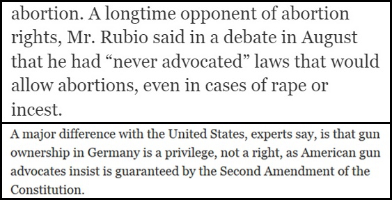 Several recent stories in the New York Times suggest that the paper believes gun rights are a matter of opinion, while abortion rights are beyond question.