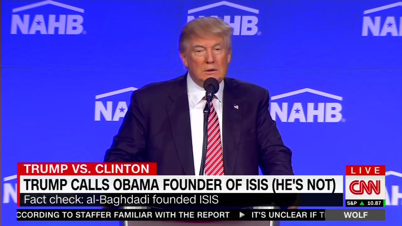 Producers at CNN deemed it necessary to clarify that President Obama is not literally the “founder” of the Islamic State, otherwise known as ISIS, as Donald Trump has claimed several times throughout the campaign.
