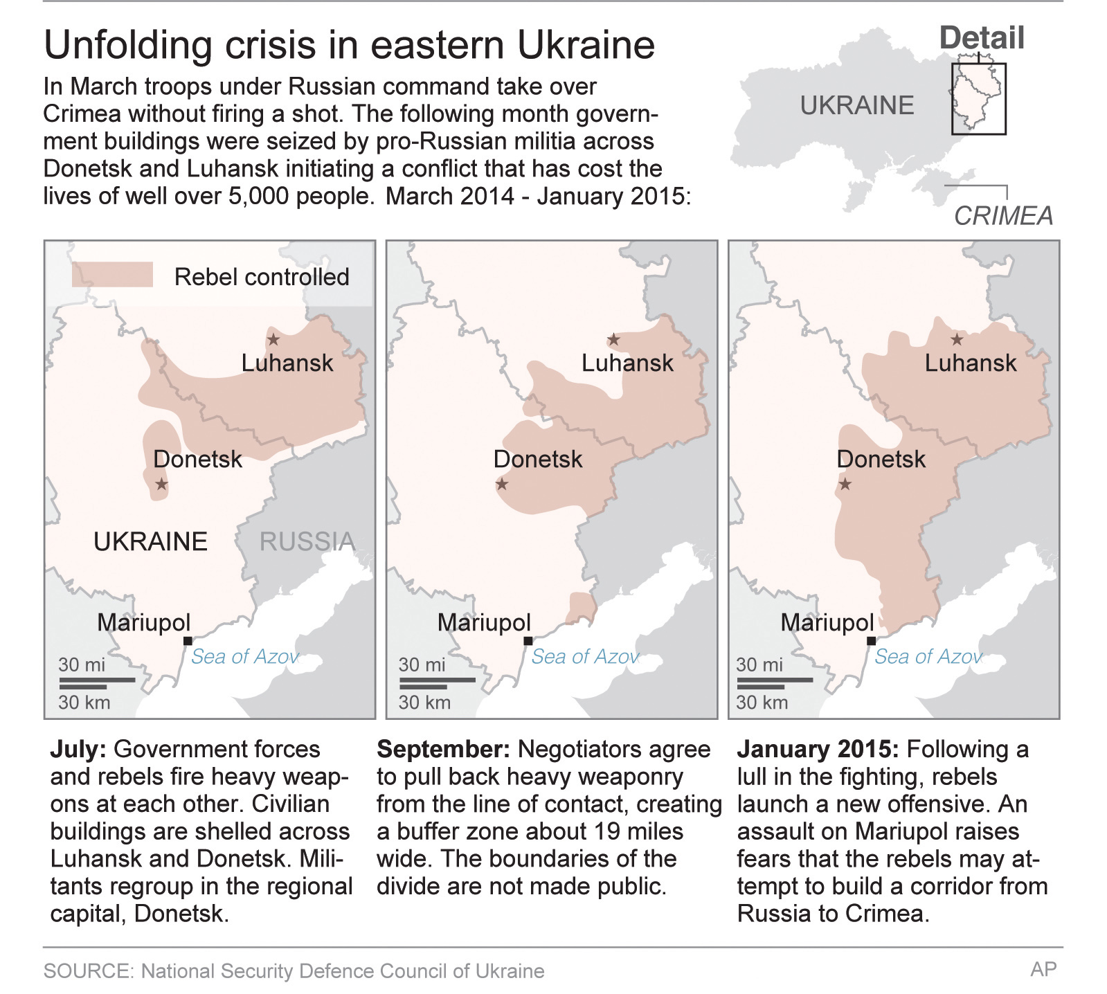 In the year since Moscow seized Crimea, rebels backed by Moscow have seized territory in eastern Ukraine in spite of an official truce. Meanwhile, American-led sanctions have done damaged the Russian economy but done little to thwart President Vladimir Putin’s belligerence.