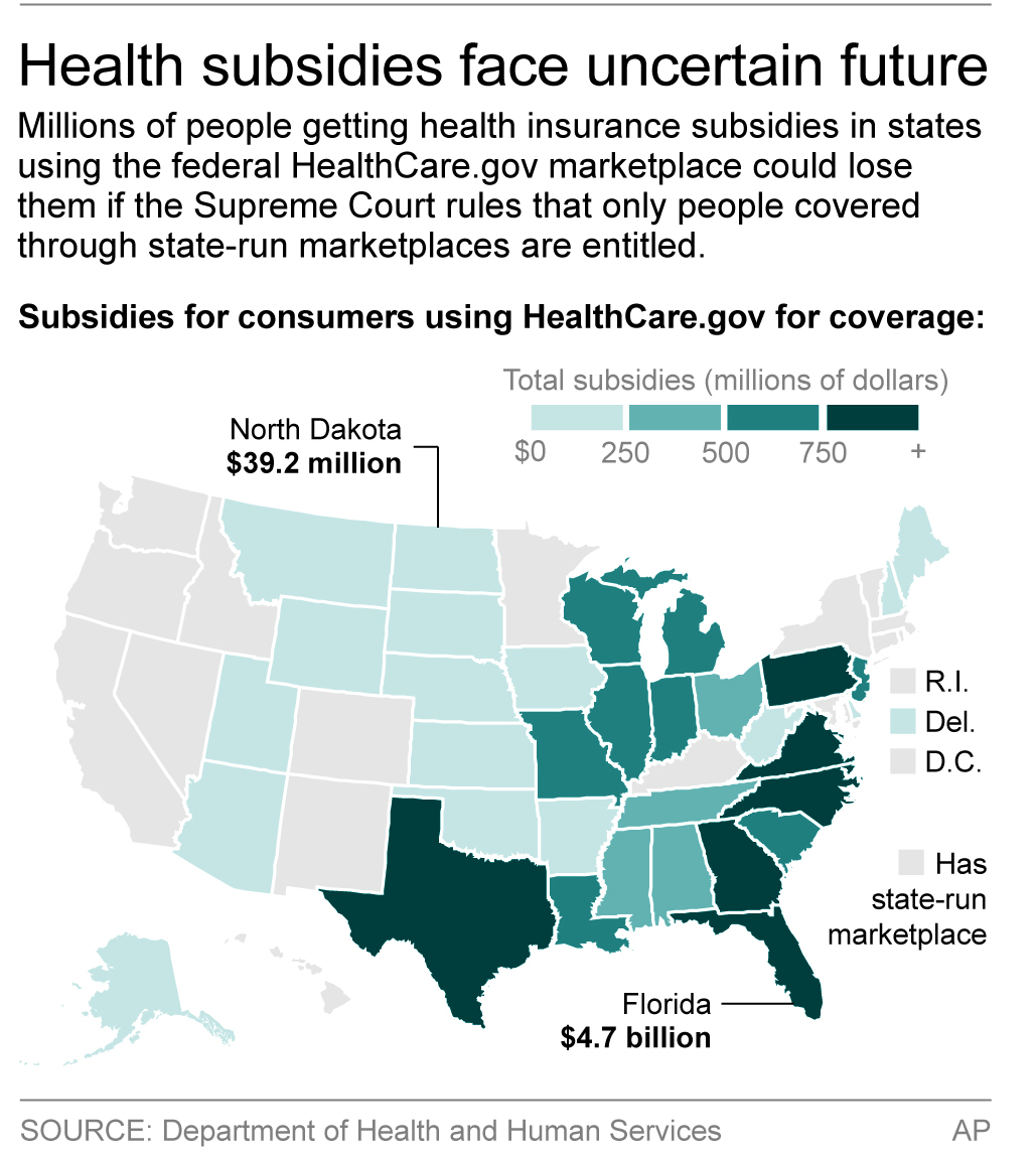 They could lose the assistance if the justices rule the Obama administration is awarding it illegally in the 37 states relying on healthcare.gov instead of running their own insurance marketplaces. The dispute, known as King v. Burwell, is over the interpretation of a few sentences in the Affordable Care Act.