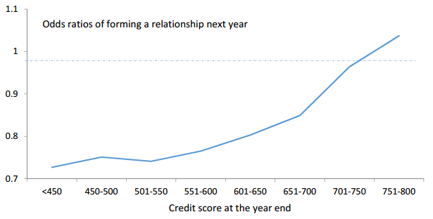 In a new study published by the Federal Reserve Board of Governors, economists found that “credit scores are positively correlated with the likelihood of forming a committed relationship and its subsequent stability.”