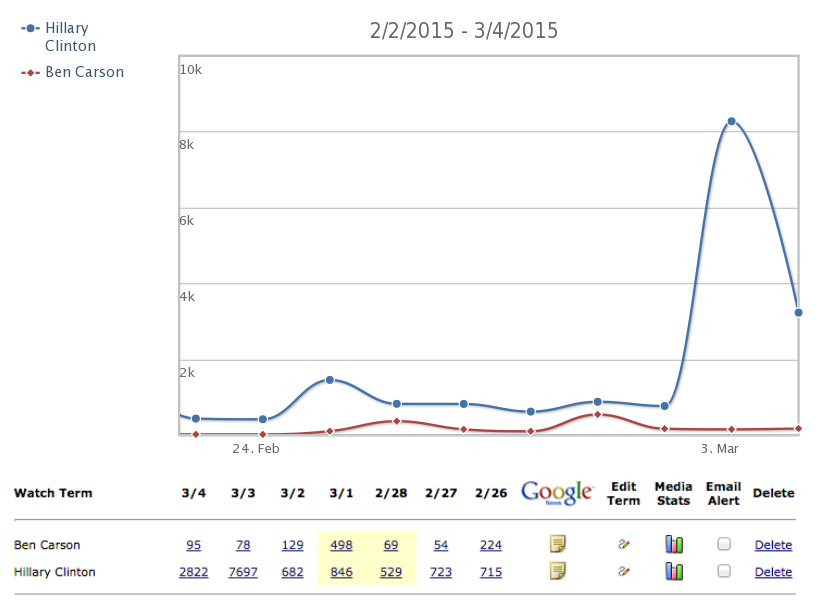 Interestingly enough, Carson’s remarks on same-sex marriage, though they’ve increased his visibility, have not diverted attention from the scandal over probable 2016 Democratic candidate Hillary Clinton’s use of a personal email account to conduct official government business during her tenure as secretary of State.