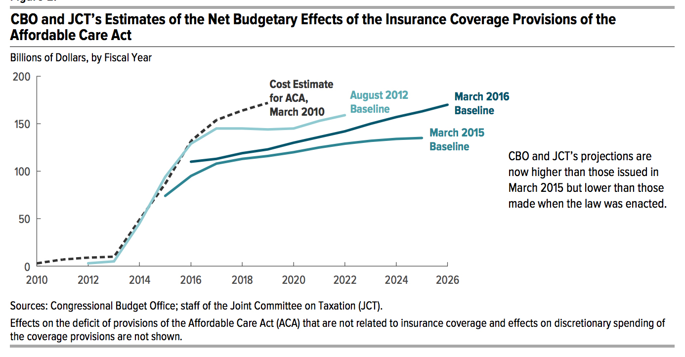 However, insurance costs under the Affordable Care Act are still expected to be lower than projected when the law was enacted in 2010.