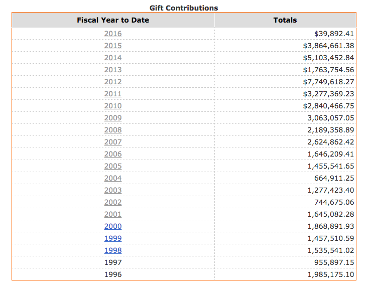 Even coming out of the great recession, donations were higher. In fiscal year 2009, $450,000 had been donated in the first two months.