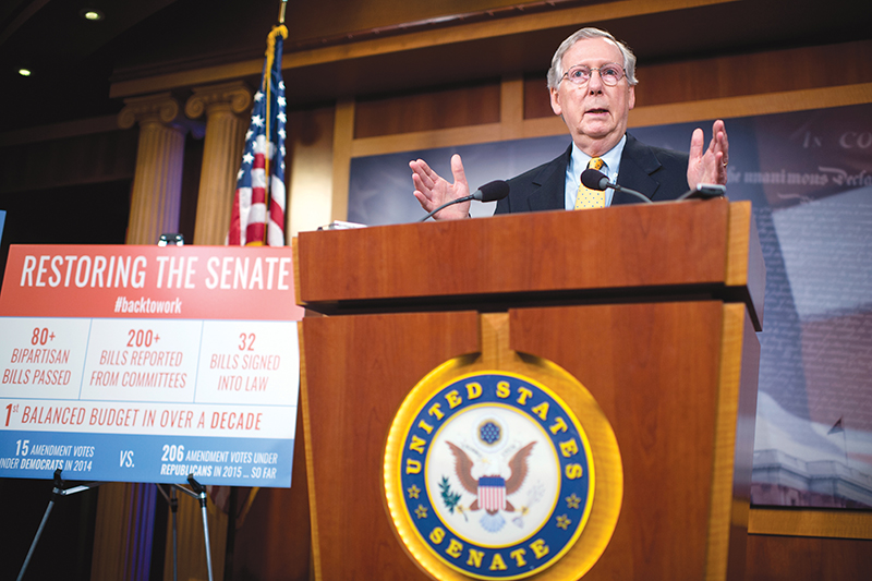 Senate Majority Leader Mitch McConnell reaffirmed his support for repealing Obamacare through the reconciliation process as late as this summer. (AP photo)