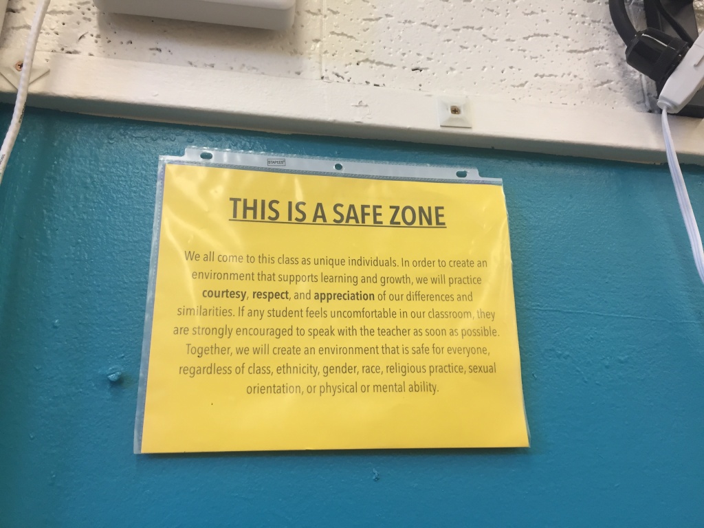 “I think it’s pretty normal for us to go over [what safe spaces mean] in terms of religious beliefs and race – and oftentimes we don’t add to that sexual orientation or gender identity, and so I’ve made it a point to make sure those are listed,” May stated.