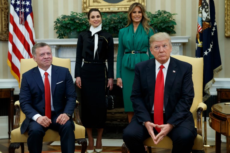 Diplomacy reaches new heights: Jordan’s King Abdullah II stands on a box for press conference with Trump